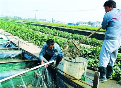 昨日,位于枫泾镇中洪村的试验基地开捕“开太红”大闸蟹