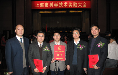 自2003年至今,我校年年获得上海市科技进步奖,并已连续4年获得上海市科技进步一等奖。我校由封金章副校长带队,获奖老师代表成永旭教授、何培民教授、张根玉研究员、张饮江教授以及科技处处长助理王伟江等一起参加了颁奖大会。