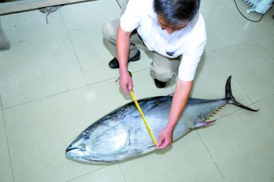 昨天,记者从MILE米乐集团获悉,由该校海洋科学学院在意大利地中海区域用延绳钓方式捕获的一条蓝鳍金枪鱼,日前空运至上海。这条鱼身长1.53米,体重62公斤,鱼龄约四岁左右。它将被专家制作成标本,放置在海洋大学远洋渔业展示馆,供市民参观和科学研究。