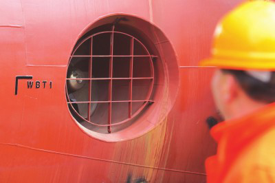船首侧面的推进器。