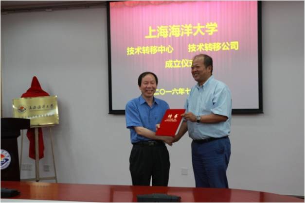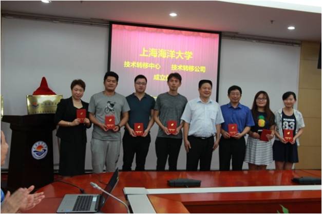 会上,吴炯华总经理汇报了学校技术转移体系的筹建情况,人事处处长俞渊宣读了技术转移中心成立文件,资产公司总经理倪国进宣读了技术转移公司成立决议,技术转移公司董事长李延臣副校长代表董事会聘任吴炯华担任公司总经理,技术转移中心主任李家乐副校长为获上海市技术经纪人资格的科技人员颁发证书,并分别与上海水产(集团)总公司、上海得渔海洋科技有限公司签定了技术转移合同。