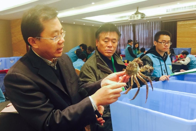 如今,随着河蟹综合生态养蟹技术的发展和推广,全国各地的湖泊、池塘、河沟等水体都能够产出一大批规格大、品质好的大闸蟹,因此,在今年的河蟹大赛上,大闸蟹们在外形和内在品质上几乎无法进行有效区分:它们都是中华绒螯蟹同一个物种,唯一的区别就是在不同水体中饲养。