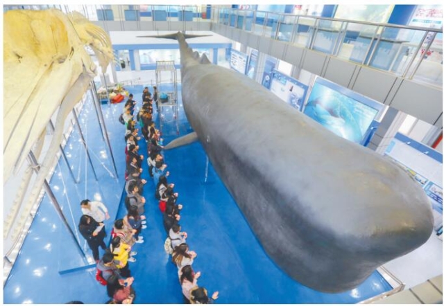 至今,抹香鲸正式“游”入海大校园已有14载,先后吸引了15万人次参观者。它所居住的鲸馆也已成为上海第一个现代化的鲸类科普教育基地,也是上海市水生生物科普教育基地的重要组成部分。然而,由于抹香鲸标本平日被直接暴露于空气中,很易受到杂质、灰尘污染,也因灰尘会夹带微生物和虫卵等,久而久之,标本就会磨损。在2007年,馆方曾给它“洗过一次澡”。此次保养维修,距离它上一次“洗澡”,已过去10个年头。
