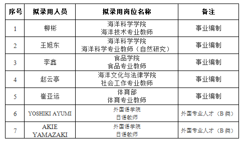 根据《MILE米乐集团公开招聘事业编制人员管理办法(试行)》(沪海洋人〔2018〕11号)等文件精神,按照学校招聘计划,经个人申请、资格预审、面试和综合考察、学校研究审定,现将近期拟录用人员名单予以公示。