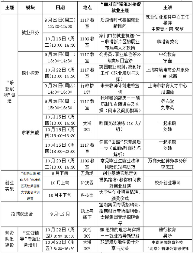 1. “面对面”精准对接促就业——主题活动安排表如下: