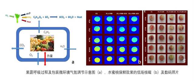 果蔬因其在被采摘以后仍保持着旺盛的新陈代谢活动,从而极易发生水分流失、霉变等腐烂变质现象。在对果蔬的呼吸强度、品质变化规律进行研究基础上,通过天然抗菌剂及微囊材料改性及聚合物微区结构调控,实现可降解包装内微环境的O2/CO2气氛控制,达到抑制果蔬呼吸及抑菌、抗氧化的作用效果,并对相关机制进行了探讨,研究成果发表在食品领域TOP期刊FoodChemistry(2020, 313, 126134)。其部分研究工作还通过发明专利转让实现了产业应用(截至2020年已经转让4项),并于2019年获得中国产学研创新奖,2020年获得浦东新区科技成果奖三等奖等奖项。