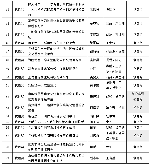 备注:后续学校将根据上海市组委会给予的推荐额度及推荐规则——各校推荐的主赛道创意组项目数原则上不超过该校推荐总数的50%,结合校赛获奖排名,统筹推荐项目参加市级赛事,将另行通知推荐项目。