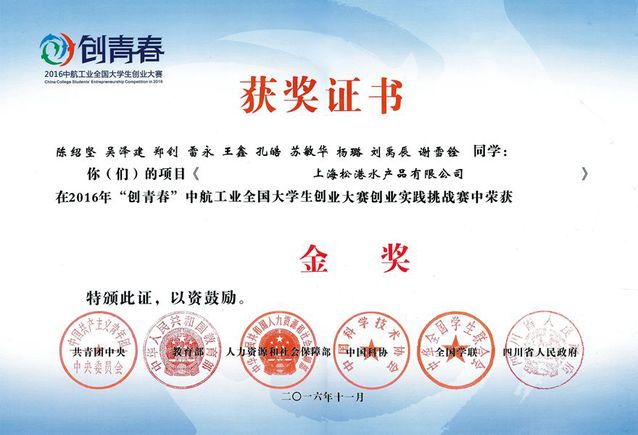2016年获全国创青春创业挑战实践赛金奖