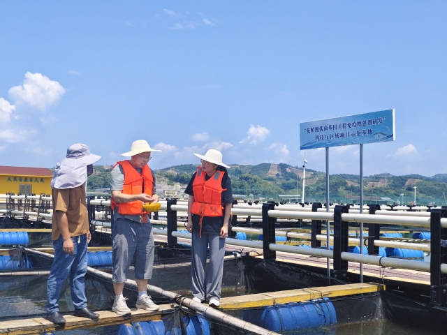 “水上”科技小院:支农爱农,水产养殖劳动实践及技术推广实践团成员在福建闽威花鲈科技小院海上鱼排上视察鱼情