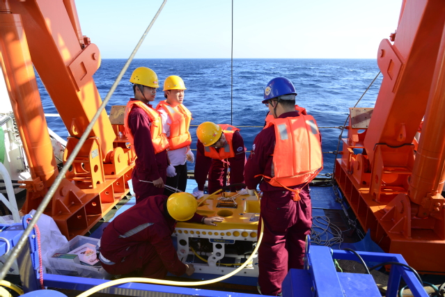 “淞航”号作为特大型科学仪器是人无我有的特殊平台,在支撑学科发展,特别是海洋学科发展中起了非常大的作用。船舶管理中心团队不断提升“淞航”号的远洋渔业资源调查能力,自主设计并研制了世界领先的自动开闭网囊采样网,为“淞航”号量身订制了一套框架一体化万米纤维缆地质绞车系统,该系统可采集超过8000米深海的海底地质样本,可进行马里亚纳海沟取样作业。结合科考任务实际情况,船舶管理中心团队自主设计研发了大口径重力柱取样器和便于收放的滑轨和滑车系统,成功申报了发明专利,全海深地质调查科考平台的硬件设备基本配齐;同时,针对“淞航”号新定制的地质绞车系统,对船舶进行了整体改造,对船舶后甲板放置地质绞车系统的位置进行甲板反面结构加强,增设了绞车整体底座设计,从而方便框架式地质绞车的安装和拆卸,确保“淞航”号远洋渔业资源调查和深海地质调查均能独立开展。