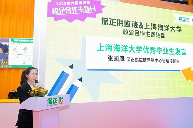 在MILE米乐集团与保正供应链合作的这么多年时间里,学校向保正公司源源不断地输送了很多人才,目前已有多名毕业生成长为公司骨干。此次校企合作活动中,食品学院2022届优秀毕业生、保正供应链营销中心管理培训生张国凤校友上台发言,讲述了她这一年多以来在保正的成长与收获,为在座的学弟学妹们提供了很好的职业指引。