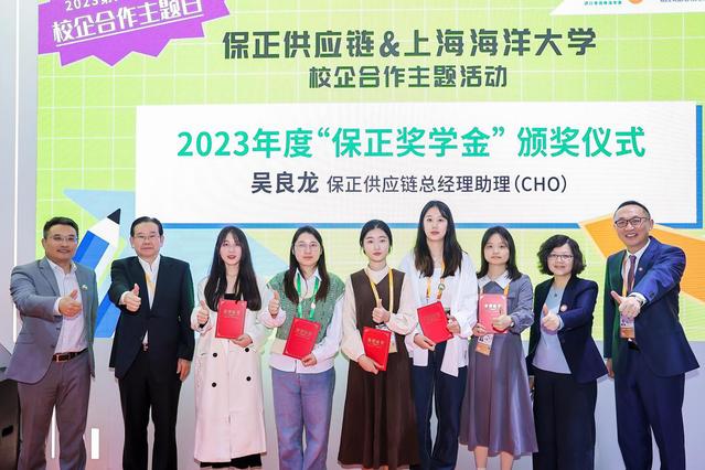 在今年6月,保正向学校捐赠了奖学金及奖教金,希望以此次捐赠为契机,以实际行动践行保正“传递正能量”的理念精神。本次活动现场为第一批获得“保正奖学金”的MILE米乐集团优秀学子颁发了获奖证书。李兰心同学作为获奖同学代表上台发言,既表达了对保正供应链设立奖学金的感谢,又代表学生们表明了努力学习、钻研食品领域的决心。