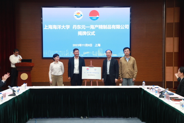 丹东元一董事长高飞、联合创始人谷援与校科技处副处长李云凯、研究生院执行院长王锡昌为“元一海大联合研发中心(加84研发中心)”揭牌