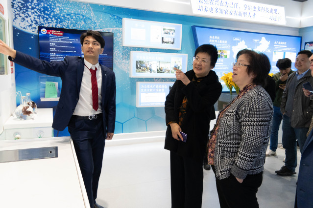 在潘燕陪同下,朱晨红一行参观了我校“双一流”建设成果展。各学院就业工作相关负责人与光明食品(集团)校招负责人进行深入交流,面对面座谈推介,双方就就业实习、人才培养、科研合作等方面达成了共识。