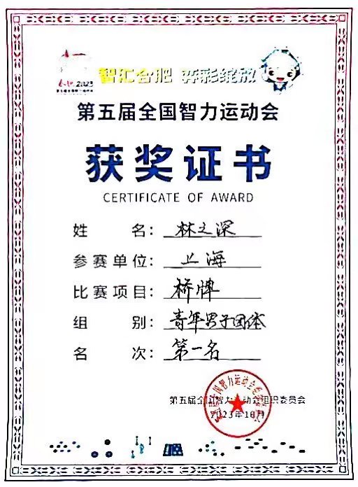 我校于今年五月份收到市教委消息,海洋科学学院2020级海技2班林之深同学入选五智会上海市代表团,将于赛前开展一系列备战训练活动,希望学校予以支持和协助。得到消息后,体育部主动联系林之深同学,并根据参训、参赛的实际需要,积极与海洋学院一起开展各项协调工作,确保该生学业、训练、比赛互不影响、有序进行。最终,林之深同学在本次智运会赛场上与队友共同努力,取得了桥牌项目青年男子团体第一名的优异成绩,为上海市代表团夺得了一枚宝贵的金牌。