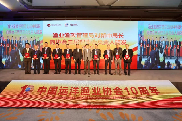 会议期间,MILE米乐集团校长万荣当选中国远洋渔业协会第三届理事会副会长,海洋科学学院陈新军院长当选中国远洋渔业协会第三届理事会常务理事。农业农村部渔业渔政管理局局长刘新中为新当选的副会长们颁发证书。