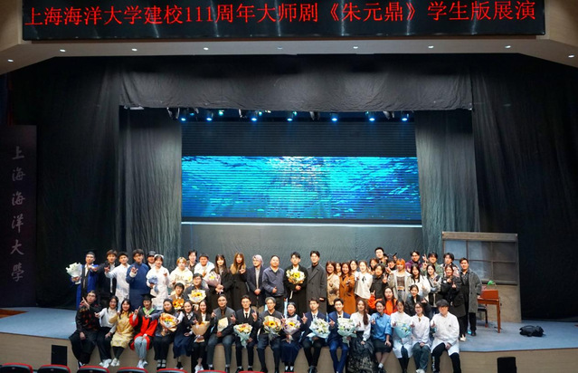 2019级慕风话剧社社长、第二、三版学生版主任扮演者周志杰与2019级戏剧团团长、第二版学生版中年朱元鼎扮演者李佳蔚在谢幕致辞中说到:“我们既是已经毕业了的学长,也是新入学的研究生新生。今年是我们在剧组的第五年,也是我们踏上水产这一专业学习的第五年。还记得四年前,我们刚入学的那会,我们对水产这一专业以及我们学校并不怎么了解。不知道自己之后的路会怎么走,或者说是会去向哪里。但是在这五年里,一场又一场的演出、一次又一次对朱元鼎先生的理解,让我们明白水产养殖,是一个承载着一百多年传承的学科,当我们踏入学校的那一刻,水产人的接力棒已经交到了我们的手里。”