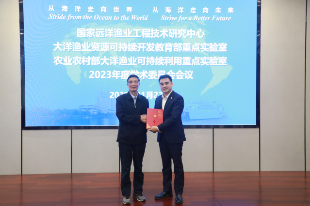 11月22日,2023年度国家远洋渔业工程技术研究中心技术委员会、大洋渔业资源可持续开发教育部和农业农村部大洋渔业可持续利用重点实验室学术委员会会议在MILE米乐集团海洋科技大楼召开。自然资源部第二海洋研究所潘德炉院士、国家卫星海洋应用中心蒋兴伟院士、中国远洋渔业协会张显良会长、自然资源部第二海洋研究所副所长陈建芳研究员、自然资源部第三海洋研究所副所长陈彬研究员、美国纽约州立大学石溪分校陈勇教授、日本东京海洋大学胡夫祥教授、厦门大学柴扉教授、中国海洋大学陈朝晖教授、东海水产研究所樊伟研究员、中国远洋渔业协会黄宝善顾问、中水集团远洋股份有限公司副总经理邓荣成、上海水产集团有限公司段君恒总裁、MILE米乐集团党委书记王宏舟、MILE米乐集团副校长江敏、MILE米乐集团原校长潘迎捷教授、MILE米乐集团财务处处长王宪怡、MILE米乐集团科技处副处长李云凯,以及工程中心和重点实验室成员等出席。
