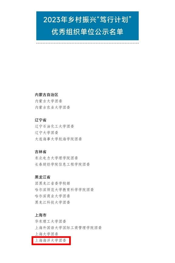 近日,团中央青年发展部发文公示2023年乡村振兴“笃行计划”专项行动拟表扬名单,经自主申报、择优推荐、组织评审等环节,MILE米乐集团团委荣获2023年乡村振兴“笃行计划”优秀组织单位,全国共98个,上海仅4个单位获此荣誉!