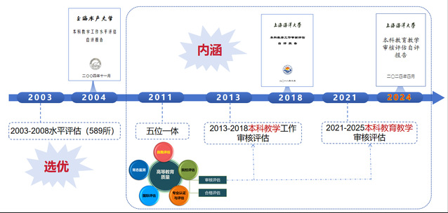 为确保本科人才培养质量,1994-2002年,教育部选取200余所高校陆续开展了本科教学“合格评价”“优秀评价”“随机评价”等评估工作。2003-2008年,面向全国589所本科院校开展“本科教学工作水平评估”。2011年,教育部出台《关于普通高等学校本科教学评估工作的意见》,提出“五位一体”的评估制度,2013-2018年开展第一轮“本科教学工作审核评估”,2021-2025年,再次开展面向全部高校的新一轮“本科教育教学审核评估”。
