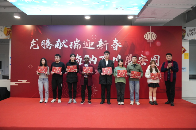 抽奖环节,校领导为留校师生抽取幸运号码,并为大家送上新年祝福,给大家带来了诸多惊喜,写春联、送春联,气氛热烈,年味浓浓。