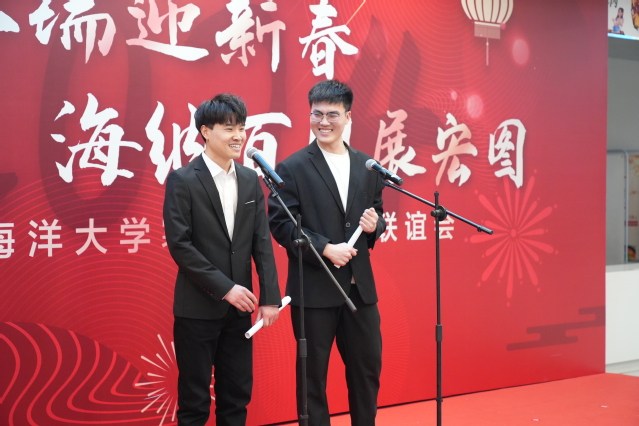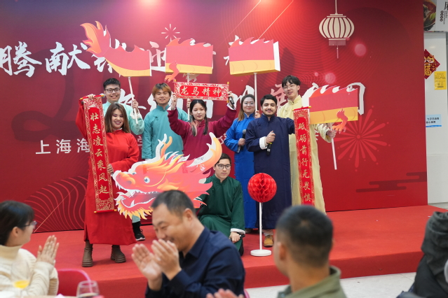 联谊会现场师生载歌载舞,《好运来》《New boy》《春暖花开去见你》《梦在临港》等歌舞表演,展现了海大师生青春活力的形象,相声《我要读博士》、国际服装秀的节目创意满满,精彩纷纷。联欢会上,还为春节期间过生日的六名留校学生举行了集体生日。