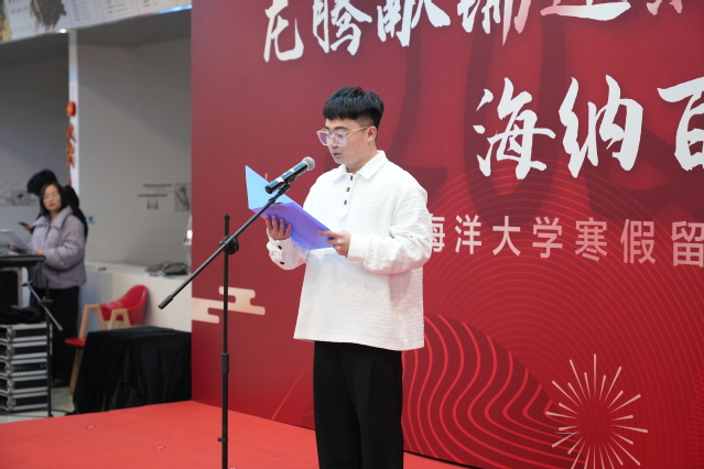 留校学生代表、水产与生命学院2022级生物学专业研究生陶钰在发言中表达了对学校关心关怀和精心培养的感谢,并表示将牢记海大使命,珍惜韶华,为学校发展、国家富强贡献青春力量。