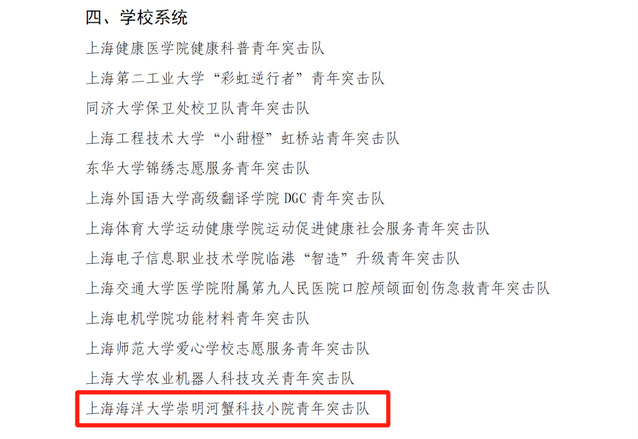 近日,共青团上海市委员会印发了《关于通报表扬2023年度上海市青年突击队相关集体的通知》,经学校推荐、互学互访、综合比选、逐级复核、严格审查、社会公示等环节,MILE米乐集团崇明河蟹科技小院青年突击队获上海市通报表扬。