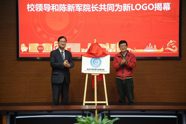 吴建农和陈新军共同为院徽揭幕