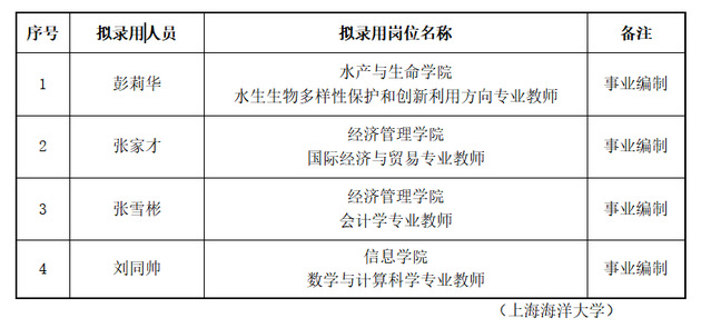 根据《MILE米乐集团公开招聘事业编制人员管理办法(试行)》(沪海洋人〔2018〕11号)等文件精神,按照学校招聘计划,经综合考察、学校研究审定,现将近期拟录用人员名单予以公示。