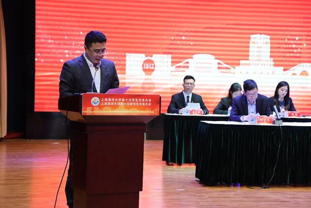 下午1时,大会正式开幕。校党委书记王宏舟代表学校党委向本次大会的召开表示热烈祝贺,向出席此次大会的上海市学联以及兄弟高校的同学们表示感谢,向与会的各位代表致以亲切的问候。王宏舟充分肯定了第九届校学生会、研究生会在思想引领、创新创业、社会实践、校园文化建设等各个方面取得的显著成绩,结合未来工作,他对海大青年提出了三点希望。一是希望大家志存高远,奋力书写挺膺担当的“新篇章”。要认真学习习近平新时代中国特色社会主义思想,把它作为塑造青年三观的来源、成为重要的思想武器、并以此为个人的发展定向立志。二是希望大家务实创新,奋力跑出新时代的“加速度”。要敢于不一样,作为海大学子要“下得了塘,上得了船,进得了库”,在专业特色、行业特色里,凸显海大特色、亮色、底色;要强能力,勉励同学们多参与社会实践,通过社团、兴趣小组等平台锻炼自己;要培养健康的身心,充分运用好学校平台参加体育锻炼,欣赏高雅艺术。三是希望大家同题共答,奋力投身“双一流”建设的“新发展”。学校发展进入快车道,要紧跟学校改革发展势头,增强主人翁意识,围绕学校人才培养、学科建设、教育教学、管理服务等方面积极建言献策,共同推进学校发挥优势、补齐短板,和学校一道推动高质量发展、实现新成长、争取新作为。