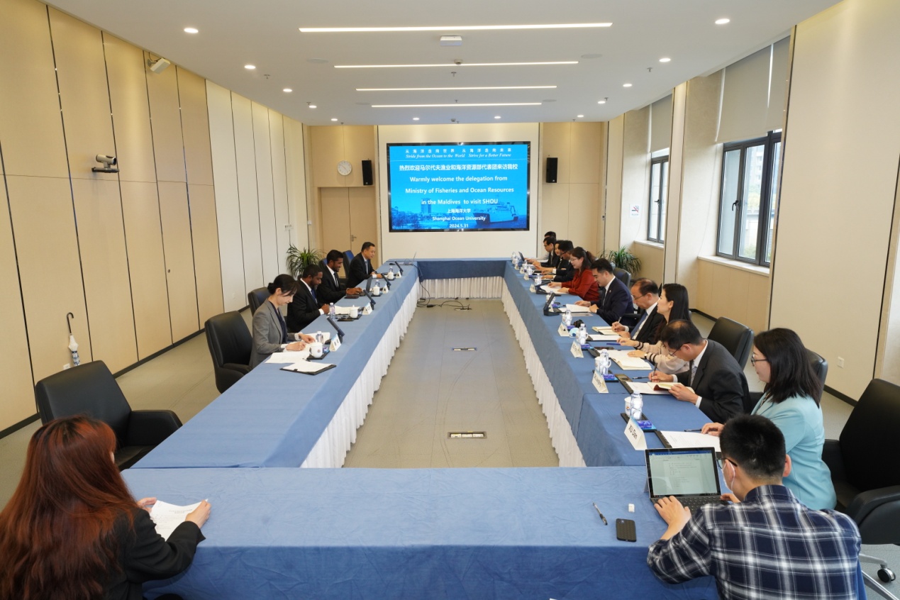 5月31日,马尔代夫渔业和海洋资源国务部长阿迈德(Amzath Ahmed)一行来校访问,学校党委书记王宏舟、副校长江敏会见来访客人。一同到访的还有上海市政府外办相关领导。科技处、研究生院、国际交流处、留学生工作办公室、水产与生命学院、海洋生物资源与管理学院以及海洋科学与生态环境领导和专家陪同会见。