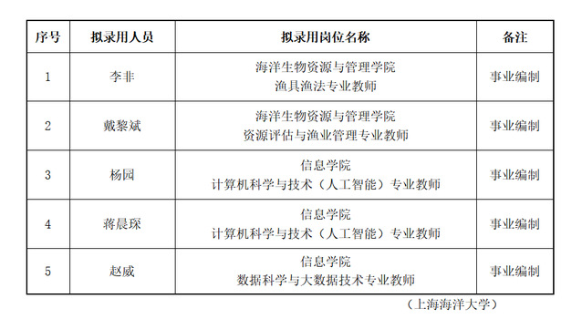 根据《MILE米乐集团公开招聘事业编制人员管理办法(试行)》(沪海洋人〔2018〕11号)等文件精神,按照学校招聘计划,经综合考察、学校研究审定,现将近期拟录用人员名单予以公示。