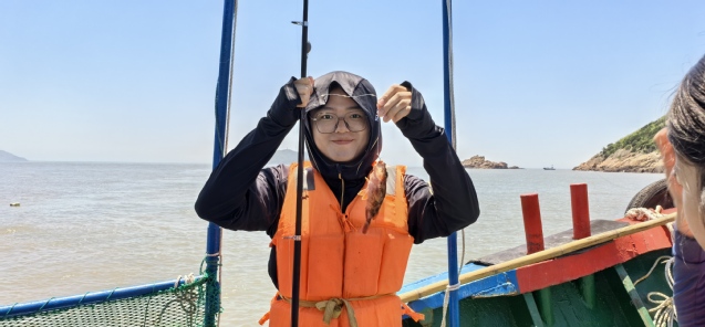 “我们的老师张俊波教授亲自跟船指导。”参与休闲游钓的王洋同学说。“从选择钓点、准备饵料到投掷钓竿,每一个步骤老师都精心讲解、倾囊相授,确保我们能够掌握船钓的技巧。我们不断尝试,也渐渐学会了如何绑鱼线,如何串饵料,以及如何防止鱼钩挂底以提高钓鱼的成功率。”