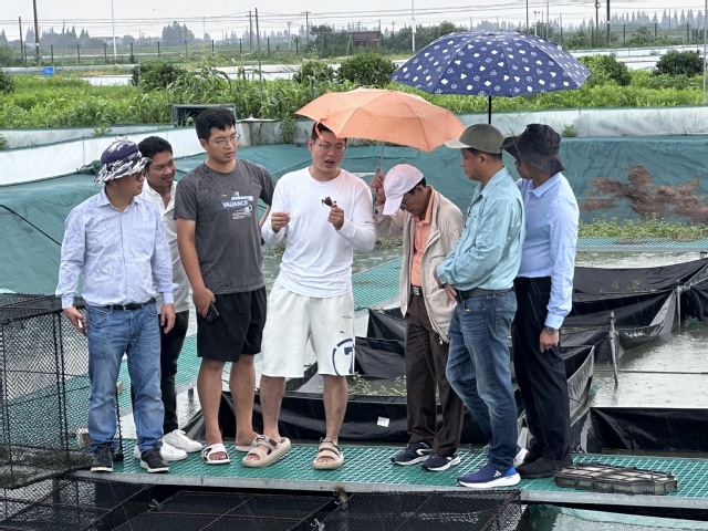 7月13日,柬埔寨渔业代表团先后参观上海玉海棠生态农业产业园和崇明沐雨农庄,前者以水稻为主题,融合科普、休闲渔业和乡村振兴等元素;后者主要“水稻-小龙虾共生”和“水稻-生态甲鱼共生模式”,生产高端大米、甲鱼和小龙虾,通过会员制和客户建立长期合作关系,同时开展农事体验和餐饮等农旅结合活动,经济效益良好,柬埔寨渔业代表团对此表现出浓厚的兴趣,详细询问了发展历史、资金投入、生产过程控制和市场开拓等,这为柬埔寨稻渔产业发展提供了新思路。