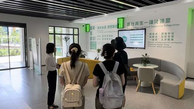 下午,团队成员来到安吉县余村的“青来集”——大余村青年人才社区。这是青年人才实现梦想的基地,是天荒坪镇积极响应省市县关于青年人才的战略部署,以“高能级 现代化 国际范”的大余村建设为契机,重构逆城市化大场景乡村优势,在余村创建的青年人才社区样板。成员们通过聆听讲解,了解到2022年7月余村推出“全球合伙人计划”,诚邀全球英才共建余村,共同拓宽绿色发展新路径。越来越多怀抱梦想的青年人才来到余村,在这里“书写”梦想,促使余村新经济新业态蓬勃兴起。讲解过程中,成员们也成为余村云村民,线上体验余村村民的生活,不禁让成员们感叹“还能这样了解余村”。