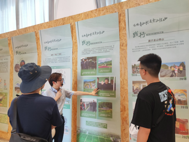 7月18日上午,团队成员来到安吉县余村深入调研“两山”理念。在讲解员的介绍下,成员们对余村发展有了更加全面的了解。从2000年初的灰尘漫天到现如今的白云蓝天,余村人民都付出了巨大努力。他们关停了虽能盈利但污染环境的矿产等工业,在一次次探索中努力恢复生态环境,利用生态资源营造美好生活。他们也在不断引进新人才,利用新科技实现“绿水青山就是金山银山”。