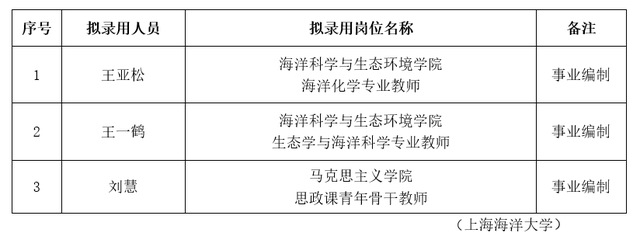 根据《MILE米乐集团公开招聘事业编制人员管理办法(试行)》(沪海洋人〔2018〕11号)等文件精神,按照学校招聘计划,经综合考察、学校研究审定,现将近期拟录用人员名单予以公示。