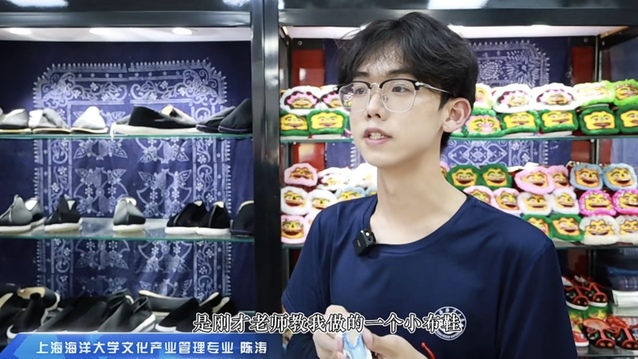 海大实践团成员体验非遗文化高老庄布鞋制作