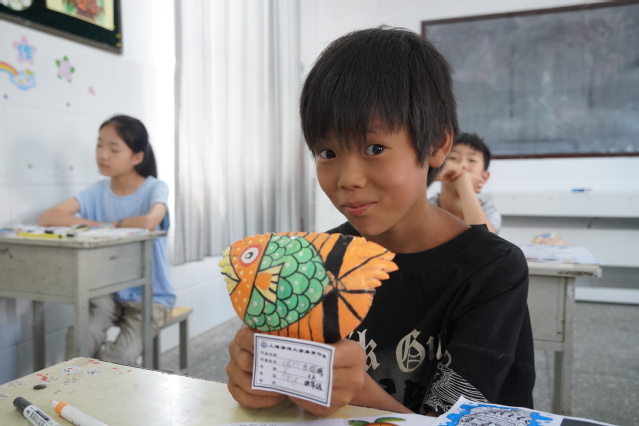 斜纹小学学生展示蟹壳画