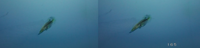声光成像观测装置拍摄到鱿鱼捕食捕钓前后的瞬间三维数据画面