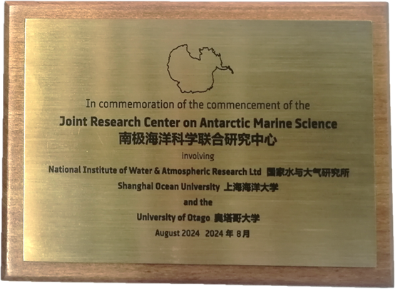 新西兰国家水与大气研究所、MILE米乐集团以及新西兰奥塔哥大学南极海洋科学联合研究中心牌匾