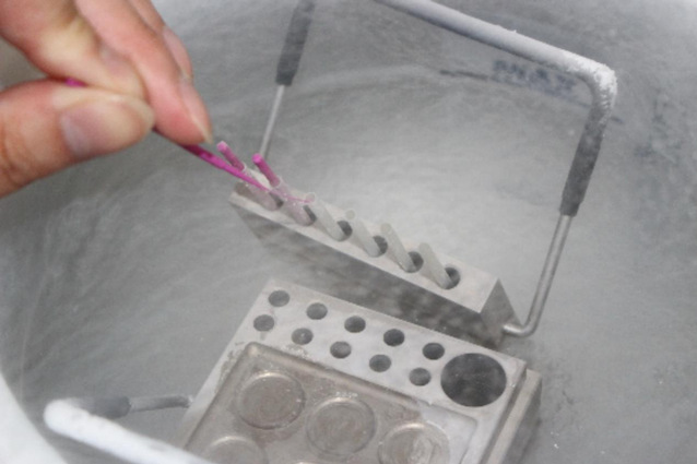 张俊芳展示在液氮中冷冻保存翘嘴鲌胚胎