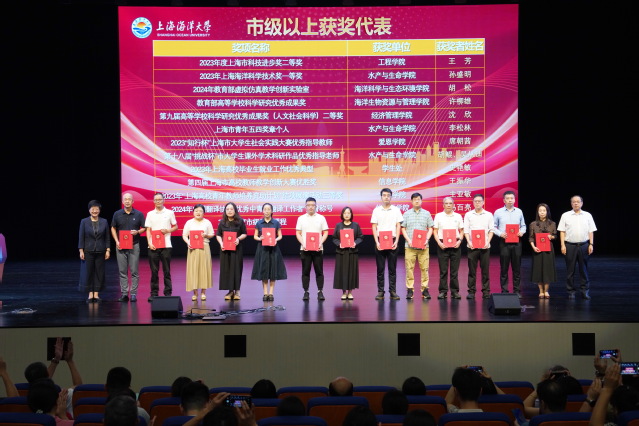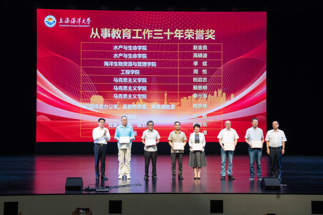 2024年,学校共有11名教工从事教育工作已满30年。王宏舟、万荣向教师代表颁发从教30年荣誉证书。会议表彰了2023-2024学年教职工先进集体和先进个人。29位新教工在会上进行入职宣誓。海洋科学与生态环境学院副教授高春梅领誓。水产与生命学院李松林作为优秀教师代表发言。