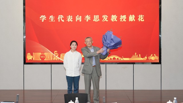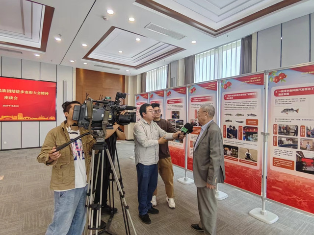 会前,水产与生命学院2023级博士研究生张之怡作为学生代表向李思发教授献花。上海教育电视台、浦东电视台采访团队成员代表。