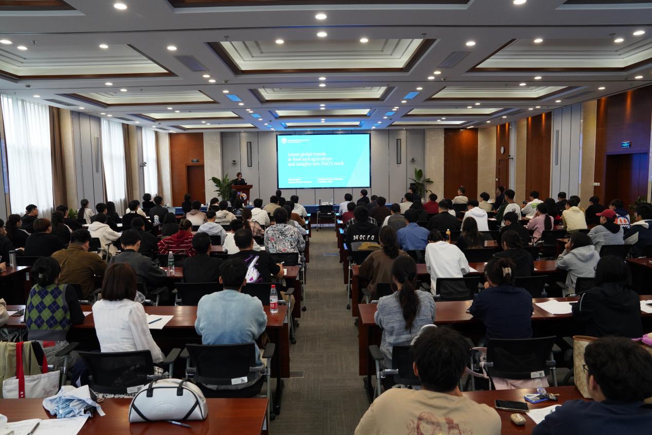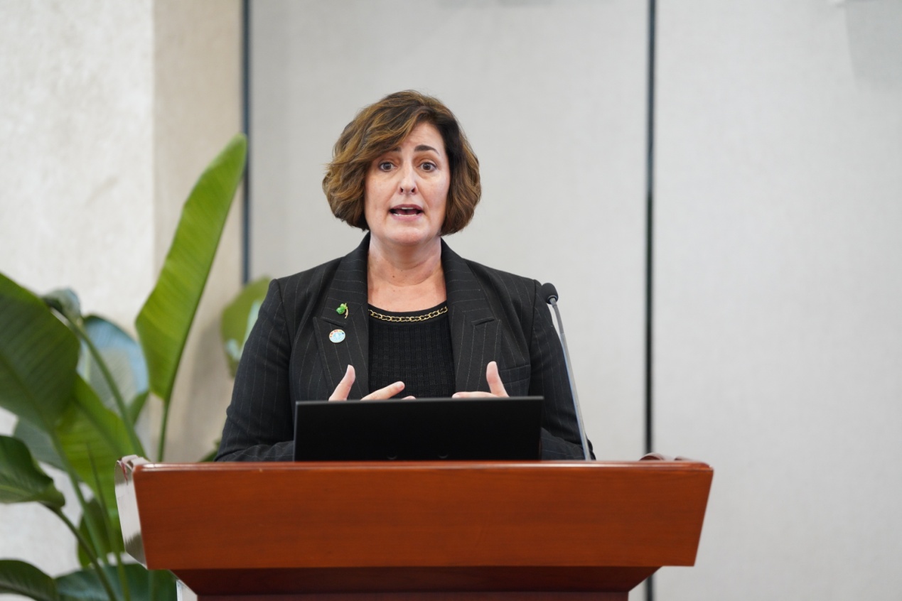 贝丝•贝克多还作了《全球粮食和农业的最新趋势以及对联合国粮食及农业组织工作的见解》的报告,报告会由副校长江敏主持。现场反响热烈,掌声雷动;互动环节,同学们踊跃提问,贝丝•贝克多详细作答,并鼓励海大青年学生积极参与到联合国2030可持续发展议程目标实现过程中。