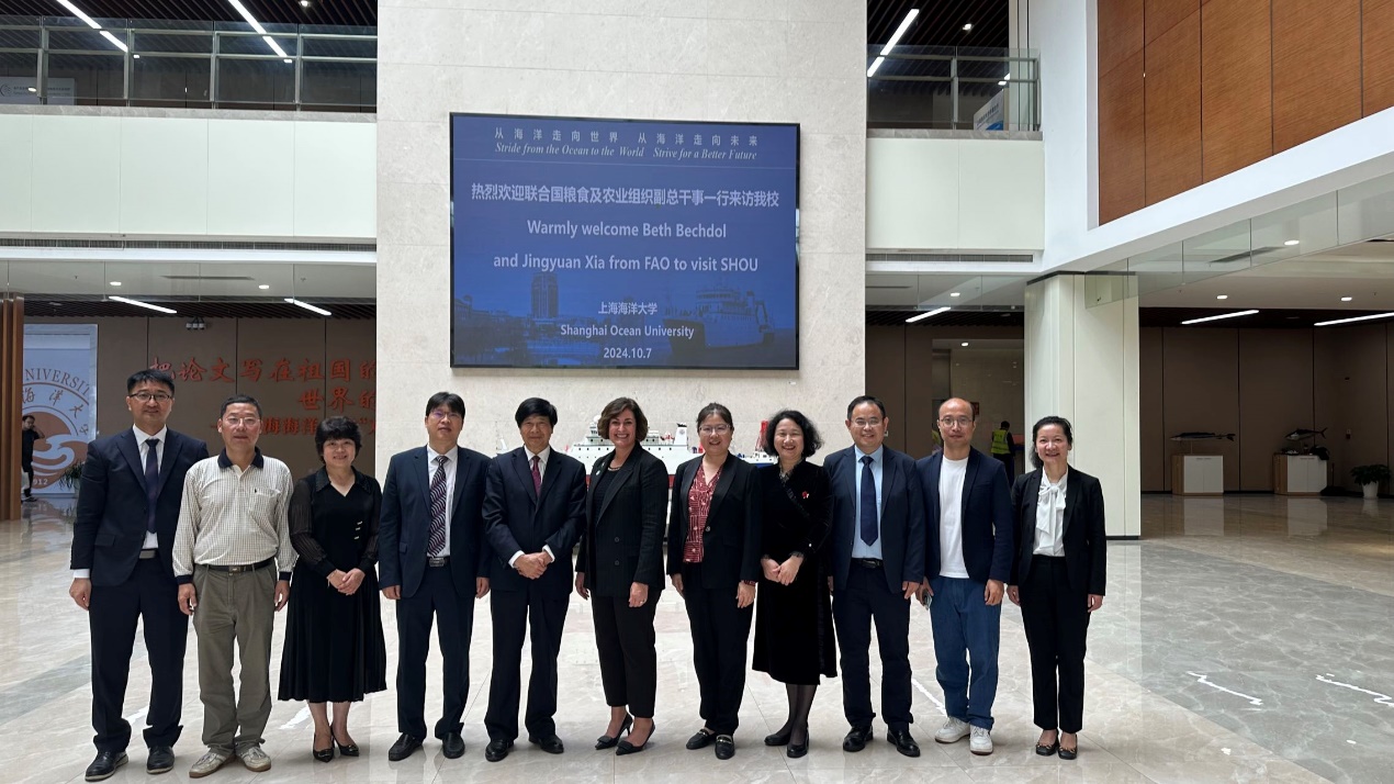 2024年10月7日,联合国粮食及农业组织(FAO)副总干事贝丝•贝克多(Beth Bechdol)和总干事办公室特别顾问夏敬源来校访问,校长万荣、副校长江敏会见来访客人。国际交流处、水产与生命学院负责人陪同。在访问期间,双方就可持续水产发展、“蓝色转型”、国际合作等重要议题进行了深入交流和探讨。