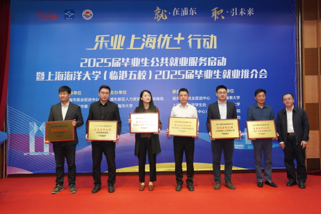 陈大可为前程无忧、同道猎聘集团、万宝盛华人力资源(中国)有限公司、北京外企德科人力资源服务上海有限公司、上海临港人才有限公司、上海仁才实业有限公司颁发2024年度“最佳合作伙伴”,希望在2025届毕业生的就业服务工作中继续携手共进、共创辉煌。