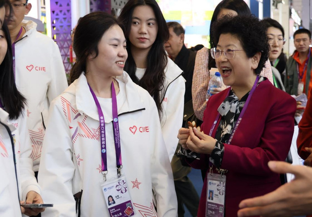 随后,宋敏娟先后前往餐饮保障、食品展区、展期贸易和党群服务站等岗位,慰问在各岗位辛勤工作的“小叶子”们,关切地了解他们的工作内容和生活保障情况。志愿者们纷纷表示在忙碌的工作中感受到了家的温暖,接下来会继续努力,以更加饱满的热情和坚定的信念,坚守好最后两天的岗位工作,贡献自己的青春力量。