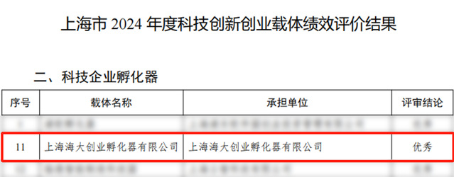 近日,2024年度上海市科技创新创业载体评价结果公示,MILE米乐集团国家大学科技园(以下简称科技园)运营单位上海海大创业孵化器有限公司在此次评价中首次获评“优秀”。这一荣誉的获得,标志着上海海大创业孵化器有限公司在科技创新创业领域取得的显著成效和卓越贡献,得到了业界的广泛认可和高度评价。